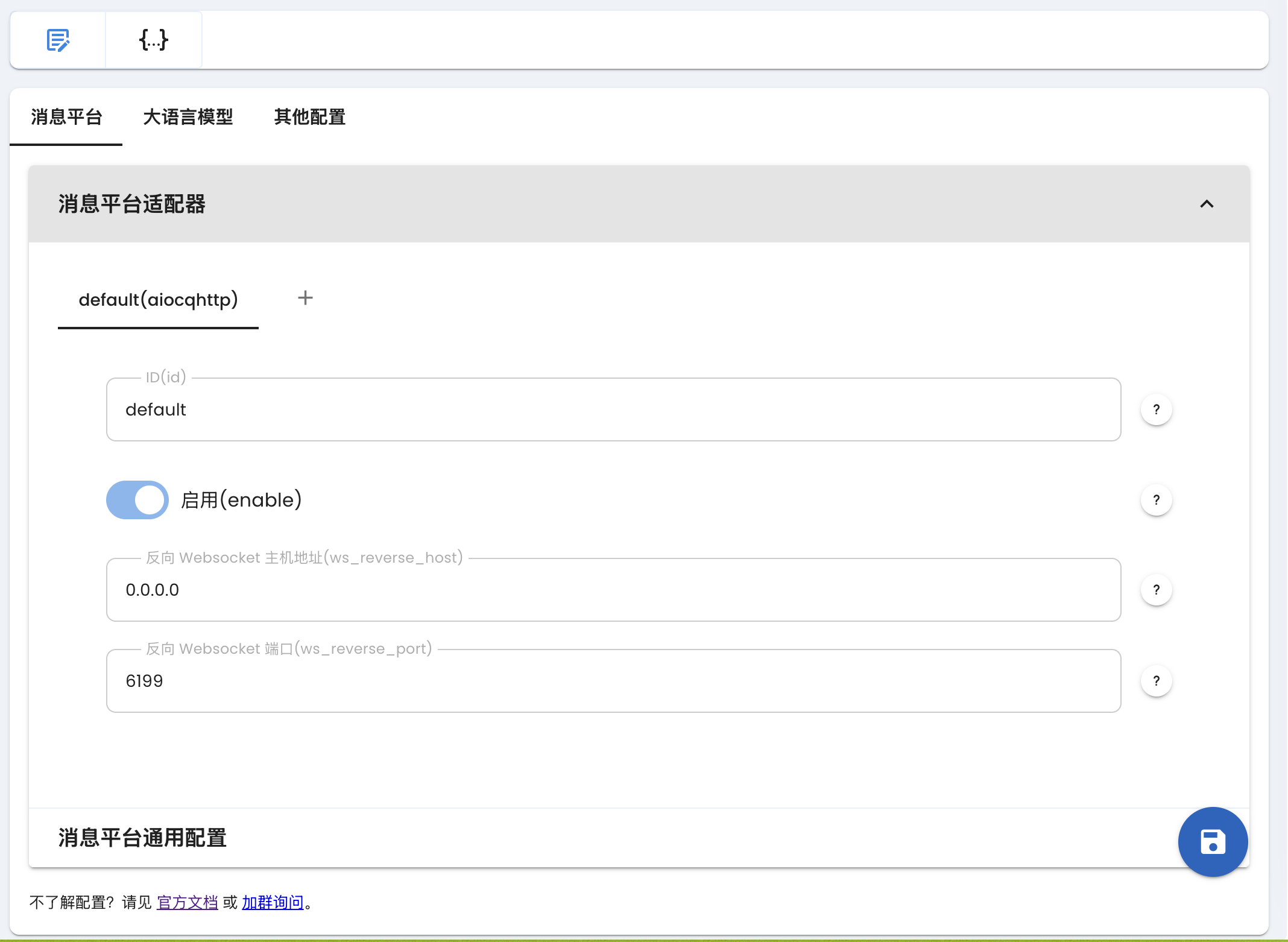 - ID(id): 随意填写,用于区分不同的消息平台实例。系统会自动填充。